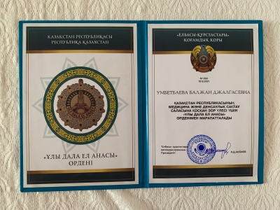 Орталығымыздың мейірбикесі Умбетпаева Балжан Джалгасевна Қазақстан Республикасының медицина және денсаулық сақтау саласына қосқан үлесі үшін " ҰЛЫ ДАЛА ЕЛ АНАСЫ " орденімен марапатталды. Орталығымыздың мақтанышы.
