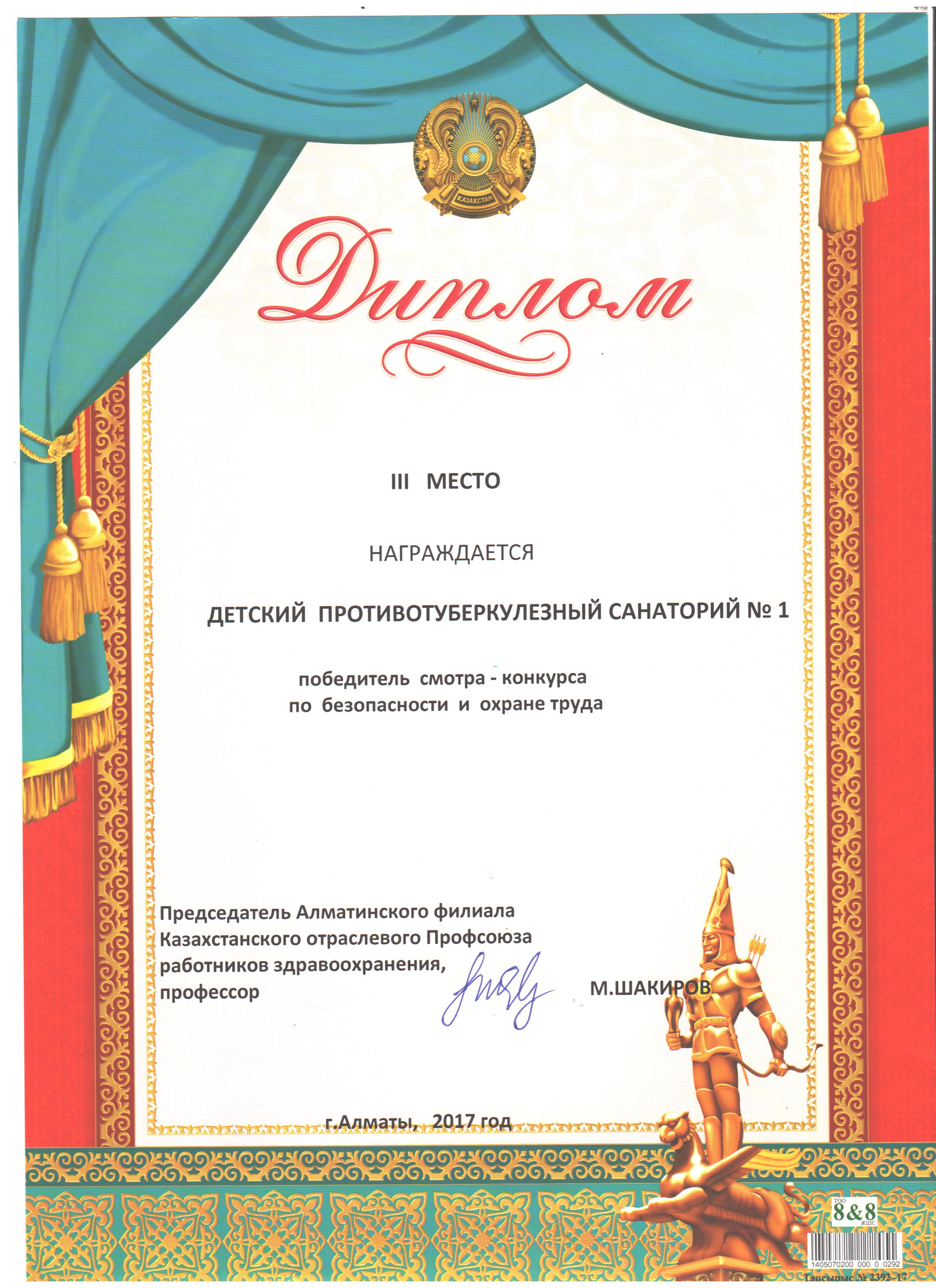 "№1 Балаларды туберкулезге қарсы емдеу шипажайы" МКҚК кәсіподақтың кезекті отырысында Денсаулық сақтау саласында еңбек қауіпсіздігі және еңбекті қорғау бойынша өткізілген байқауда 3 орынға ие болды