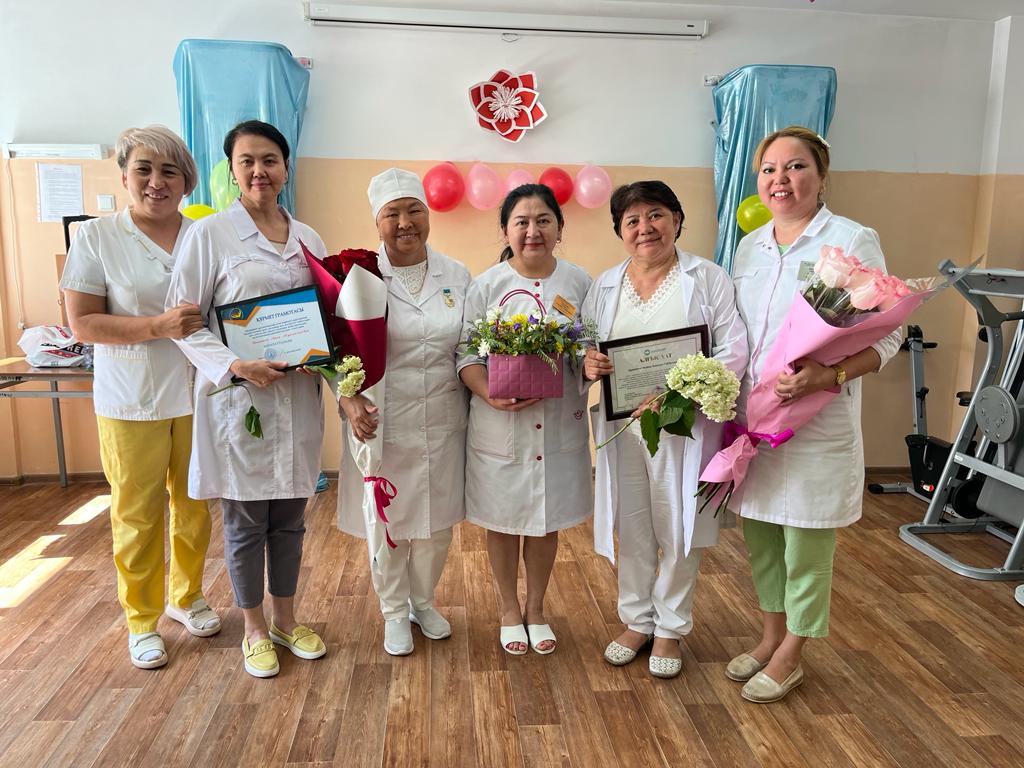 18.06.2023 жыл ШЖҚ «Балалар фтизипульмонология оңалту орталығында» КМК медицина қызметкерлері күнімен орталығымыздың директоры Г.А.Хамзина медицина қызметкерлерің құттықтап «Денсаулық сақтау үздігі» төсбелгісімен сонымен қаттар Қоғамдық денсаулық сақтау басқармасынан «Сенім» және Медеу аудандық «Аманат партиясы» мақтау қағаздарымен алғыс хаттарын табыстады.