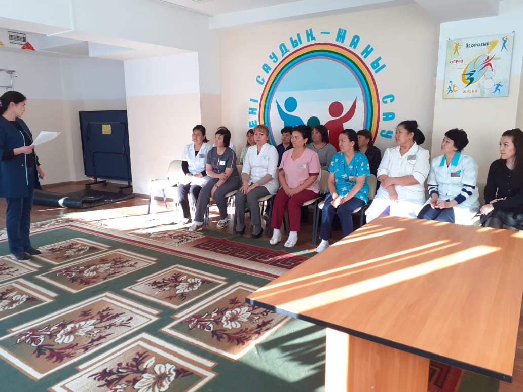 «Фтизиопульмонологияның балаларды оңалту орталығы» КМК-да бас дәрігердің қант диабеті жөніндегі орынбасары Кашкеева Н.Т Қазақстан Республикасының заңнамасына сәйкес міндетті медициналық сақтандыру жүйесінде қызметкерлермен тренинг өткізді.