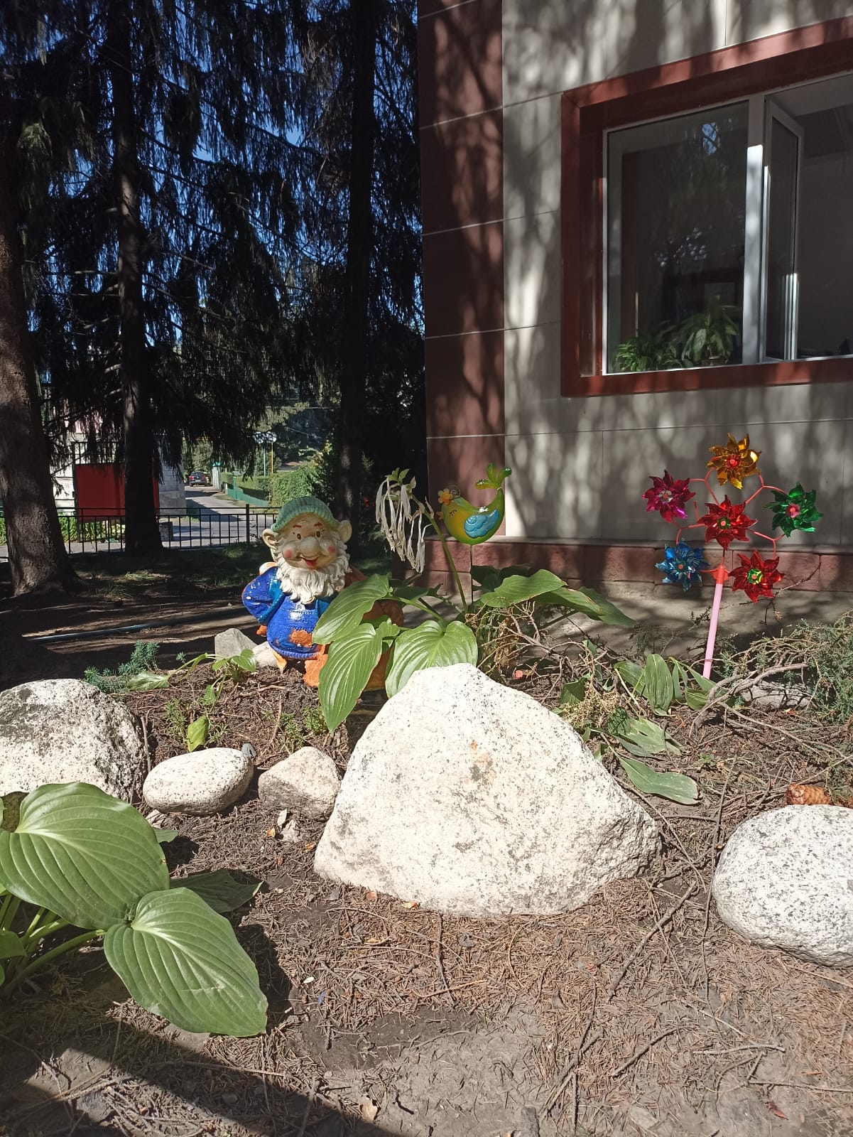 Орталығымызда жаз айларында абаттандыру жұмыстары жүргізілді. Сонымен қатар орталық ауласына жасыл желекті гүлдер егілді. Ағаш ұстасы Тоқанов Сертай өзінің қол өнер туындыларын жасап, қызметкерлер Кудерова Асем, Мухамедиева Мапруза, Ниязбекова Мадина орталықтың ертегі әлеміне айналуына, балалардың қызықты демалыс өткізулеріне үлесін қосты.