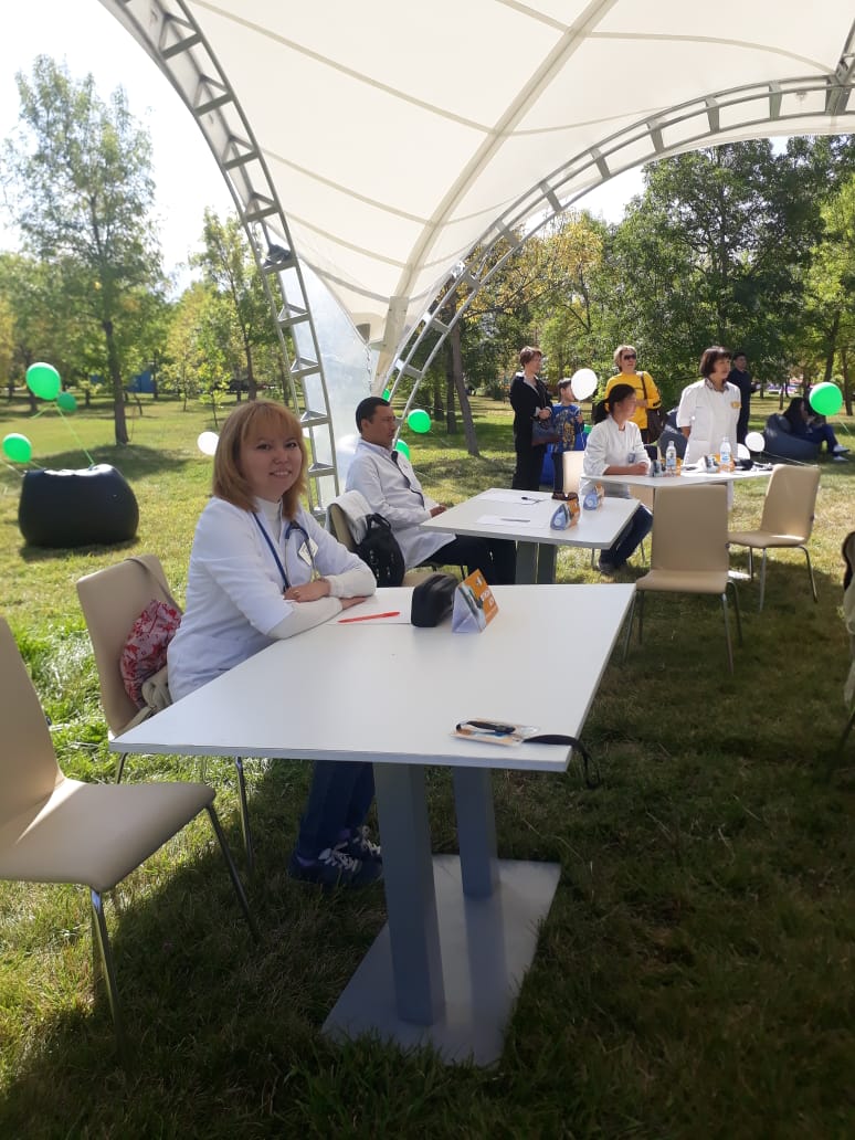 16 сентября 2018г в Парк им.Первого Президента состоялась информационно-консультативное мероприятие в рамках Дня города Алматы, в котором активное участие приняла главный врач Хамзина Гулнар Амангелдиновна и зав.отделением Абланова Меруерт Аскаровна