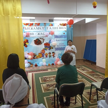 Бас дәрігері Хамзина Гулнар Амангелдіқызы бастаған ұжым,медицина ғылымының докторы Камзина Бижамал Галиевнаны 80 -жас туған күнімен құттықтап,ерекше ілтипатпен ,жүрек жарды тілектерімен және концерттік іс -шаралар ұйымдастырып,ерекше көңіл- күй сыйлады . Бүгінде ұжымымыз Сізді үлкен аброй-беделге ие болған тәжірбиелі,үздік маман ретінде құрмет тұтып сыйлайды.