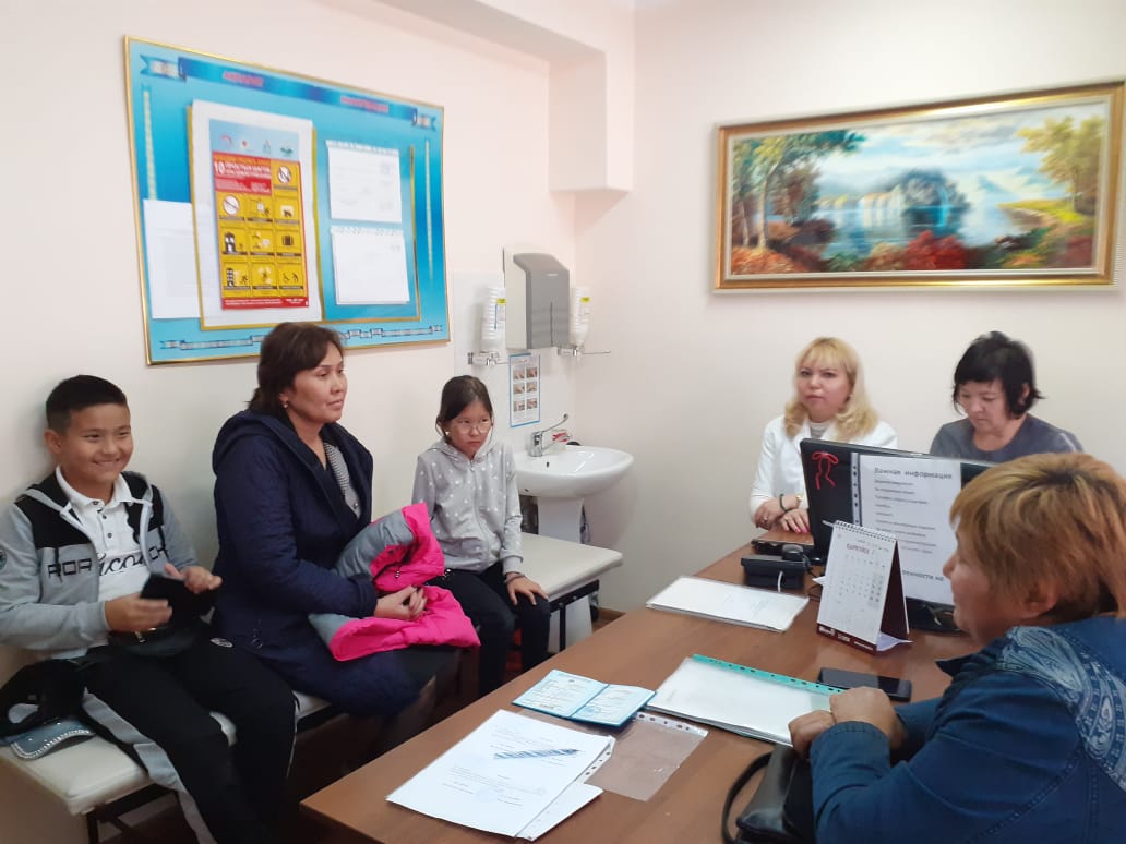 В КГП на ПХВ "Детский реабилитационный центр фтизиопульмонологии"в приемном покое с родителями и детьми проведена беседа на тему ОСМС по бесплатному стационарному лечению в рамках ГОБМП.