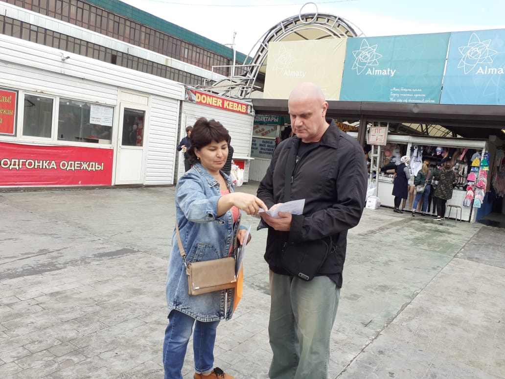 Сотрудниками КГП на ПХВ "Детский реабилитационный центр" в Медеуском районе по ул.Жибек Жолы "Зеленый базар" проведена санитарно-просветительная работа с работниками рынка и покупателями на тему разьяснения бесплатной стационарной и консультативной помощи в рамках ОСМС в соответствии с Законом РК.Также были розданы рекламные брошюры и проспекты по ОСМС.