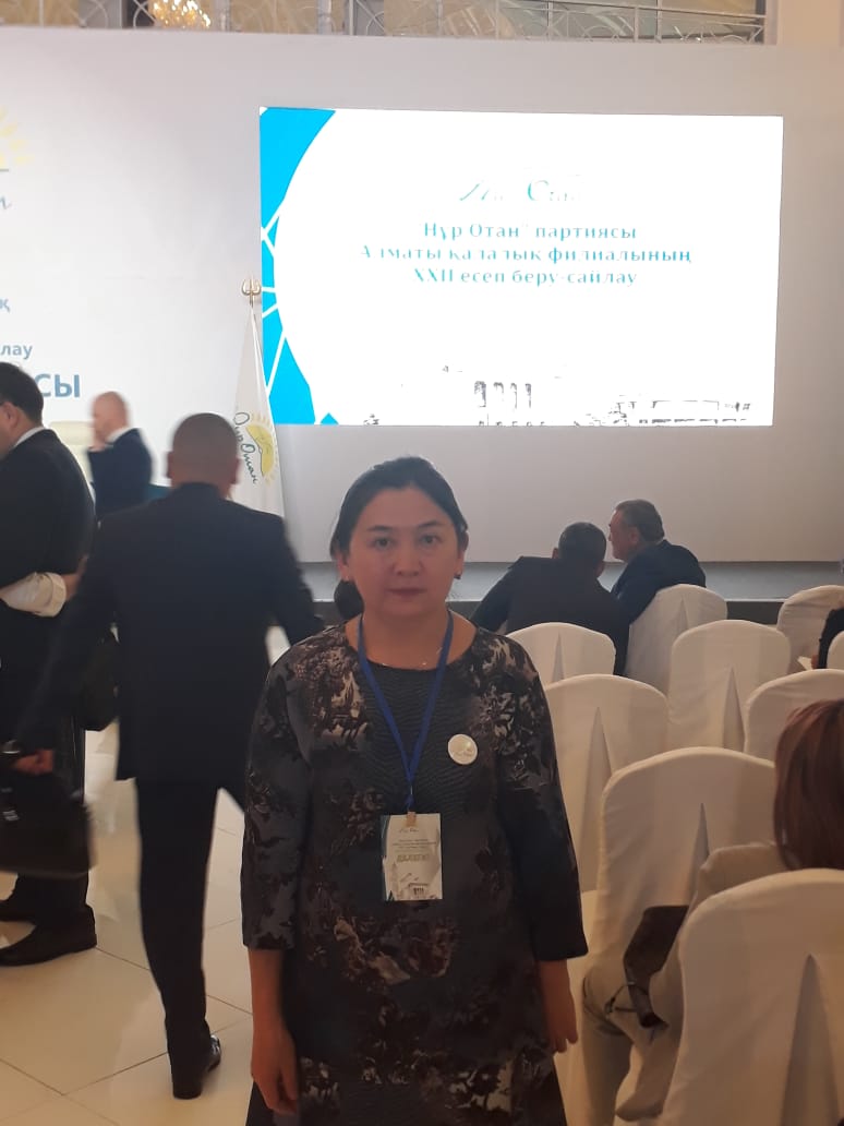17 сентября 2018г в "Дом приемов" состоялась очередная XXII отчетно-выборная конференция с участием Председателя АГФ партии "Нұр Отан", аким г.Алматы Б.Байбек в котором приняла участие Председатель ППО "Келешек" Хамзина Гулнар Амангелдиновна