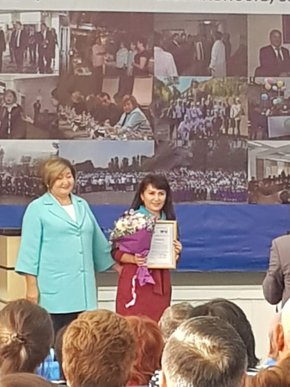 Председатель профсоюзной организации нашего центра, инспектор по кадру Асем Кумарбековна заняла второе место в конкурсе, посвященном Дню профсоюза. Поздравляем коллегу с победой!